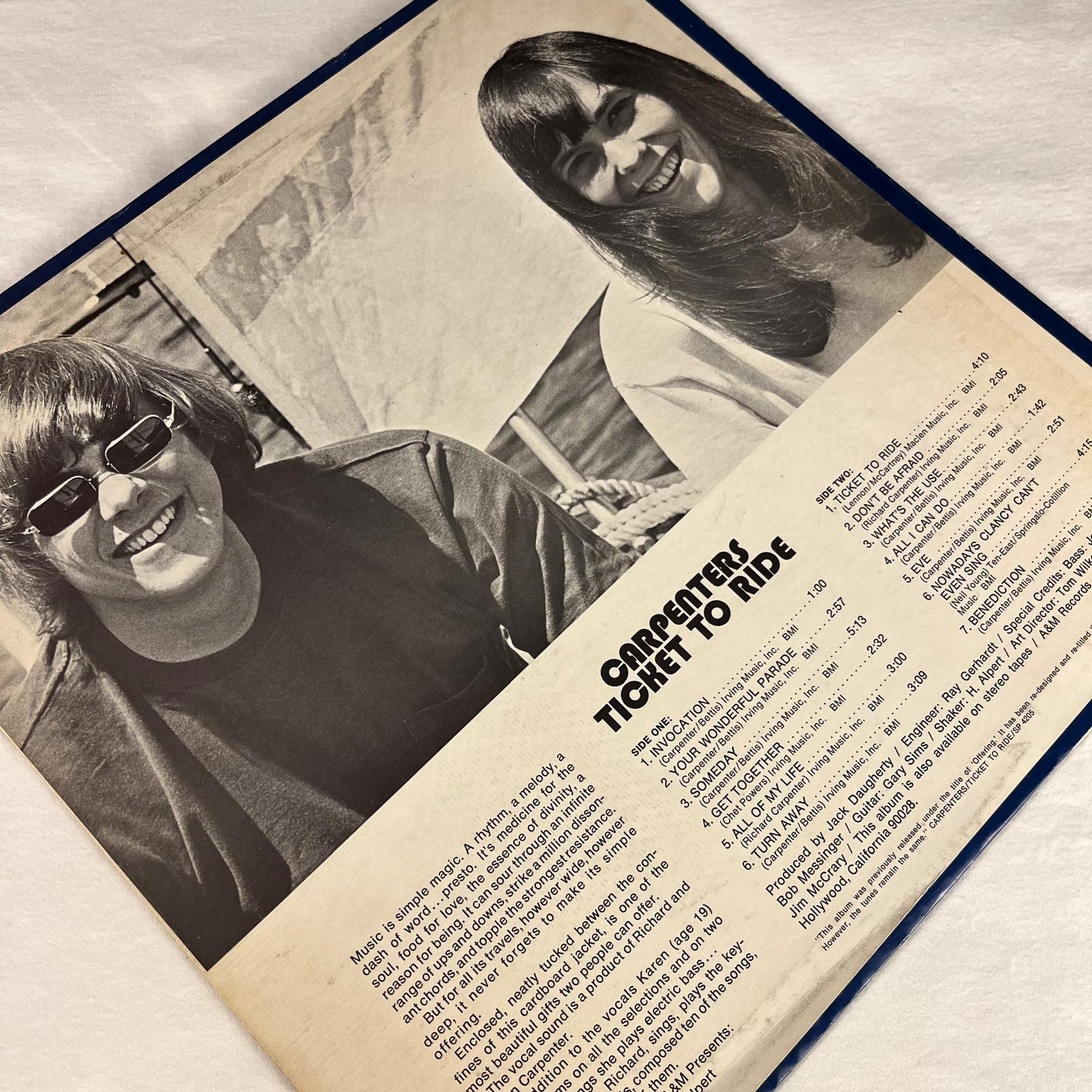 Upon its initial release as Offering, the album failed commercially, selling poorly and receiving little attention. However, after the Carpenters’ breakthrough success in 1970 with “Close to You”, the album was rebranded as Ticket to Ride, and it gained more recognition.
